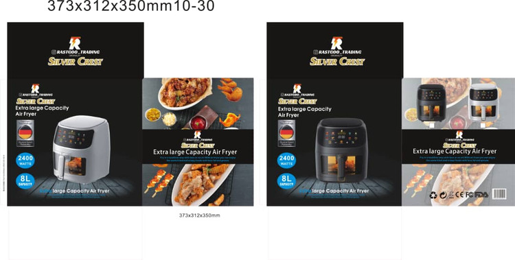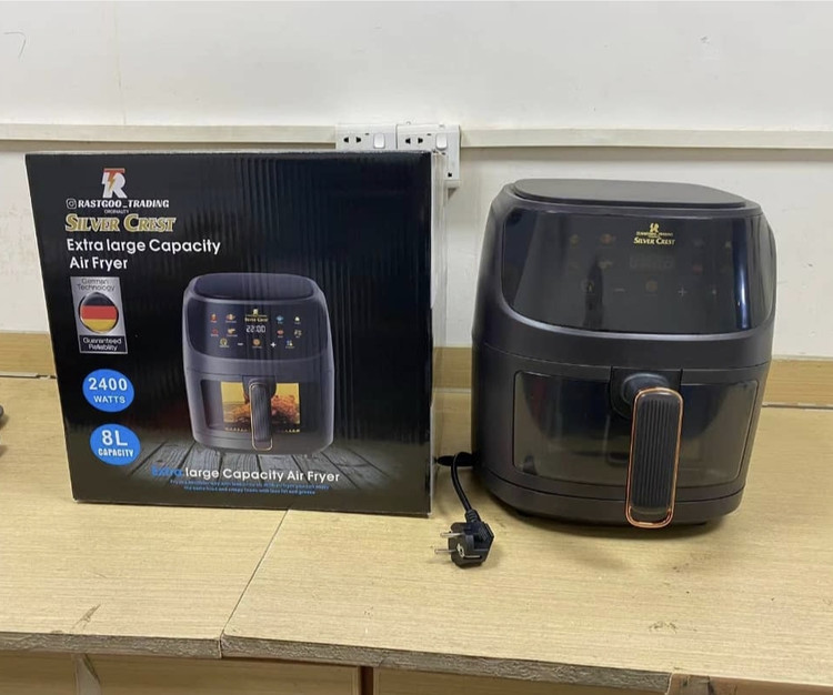 سرخکن بدون روغن(هواپز)سیلور کرست با مشخصات:۸لیتر،۲۴۰۰وات،درب شیشه ای،طرح ویندوز،لمسی،درب شیشه ای جهت نمایش پخت،چراغ داخل محفظه پخت،دارای فن گردش هوا،قابلیت تظیم و تغییر دما و زمان در حین پخت،دارای تنوع برنامه پخت و ساخت سفارشی با بهترین کیفیت